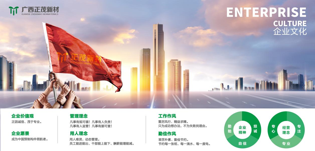 正茂集團(tuán)是一家專(zhuān)業(yè)從事高端混凝土研制的高新技術(shù)企業(yè),創(chuàng)建于2007年,自主研發(fā)混凝土制品30余種,擁有國(guó)家級(jí)專(zhuān)利20余項(xiàng),經(jīng)營(yíng)范圍以新型環(huán)保建筑復(fù)合材料及裝配式建筑預(yù)制構(gòu)件為主體。2019年7月,正茂集團(tuán)正式簽約入駐馬山縣蘇博工業(yè)園區(qū),投資建設(shè)以高鐵、地鐵、市政、電力、水利及裝配式建筑構(gòu)件等為主的生產(chǎn)線項(xiàng)目。...